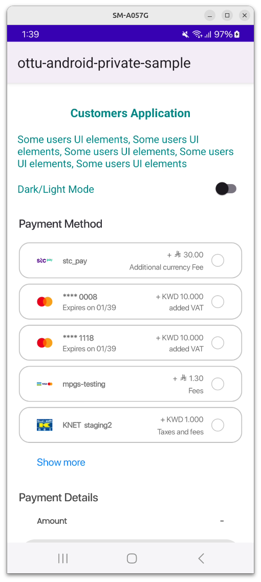 flutter runIf all configurations and dependencies are correctly set, the app should build successfully and display the Ottu Checkout Widget.